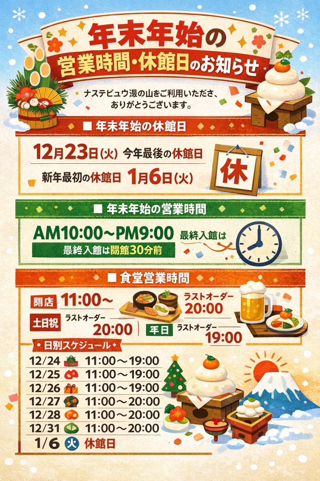 年末年始の営業時間・休館日のお知らせ