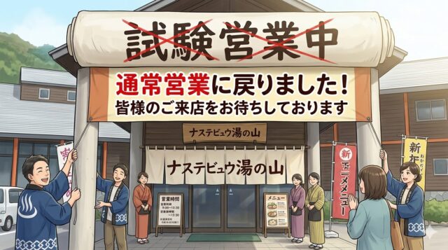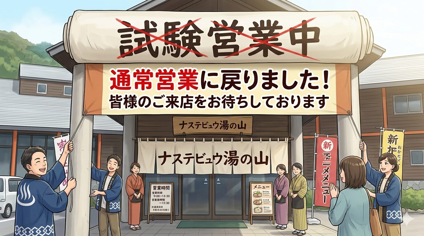 温泉の安定性を確認するため、10日間の試験営業を実施いたしましたが、その結果、温泉が安定して供給されていることを確認いたしました。