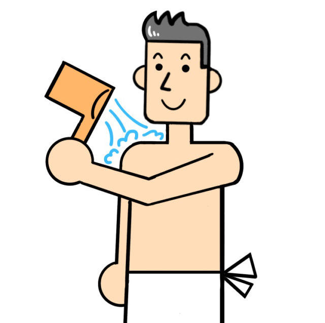 かけ湯というと、湯を掬って体にザバーっとかける想像をされる方もいらっしゃいます。それも悪いわけではないのですが、体をお湯の温度から慣らすという観点から見るとあまり良いとは言えません。