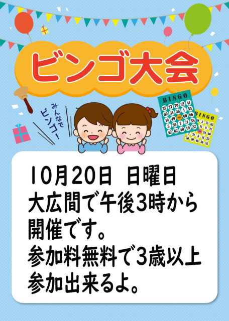 ※開始10分前位にビンゴカードお配りします、それを受取った段階で参加とします。